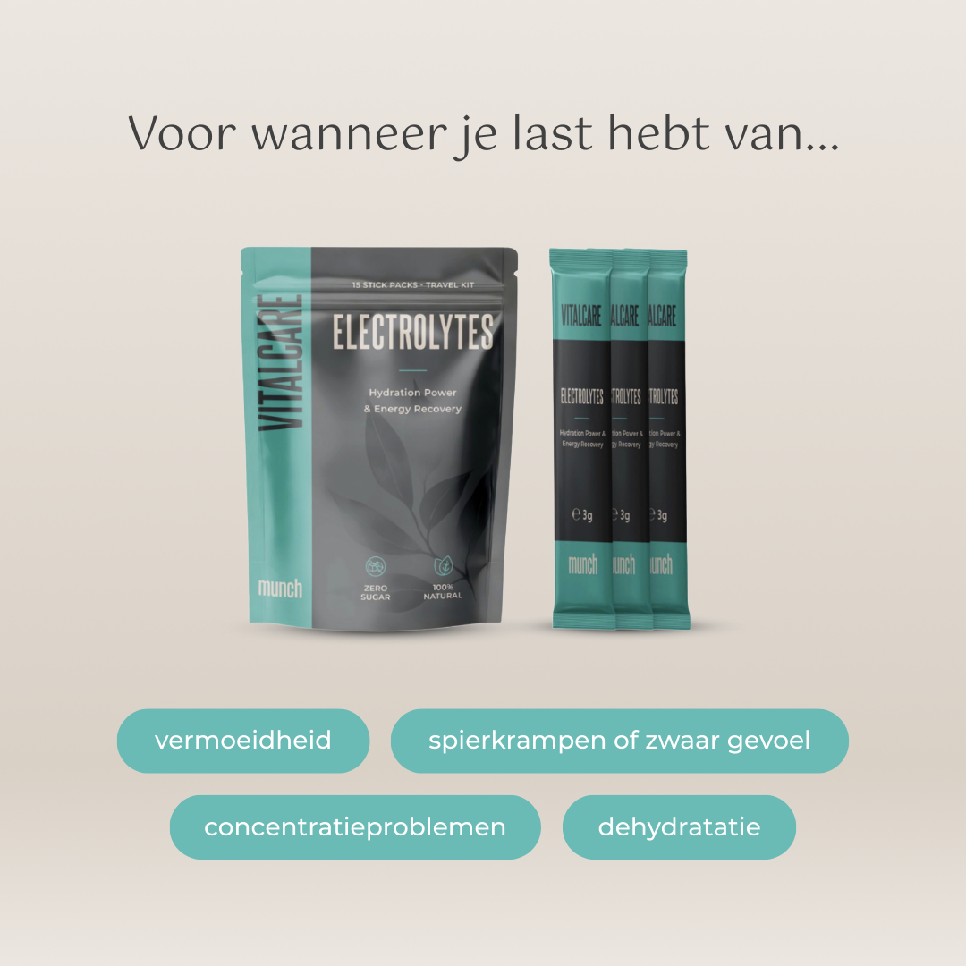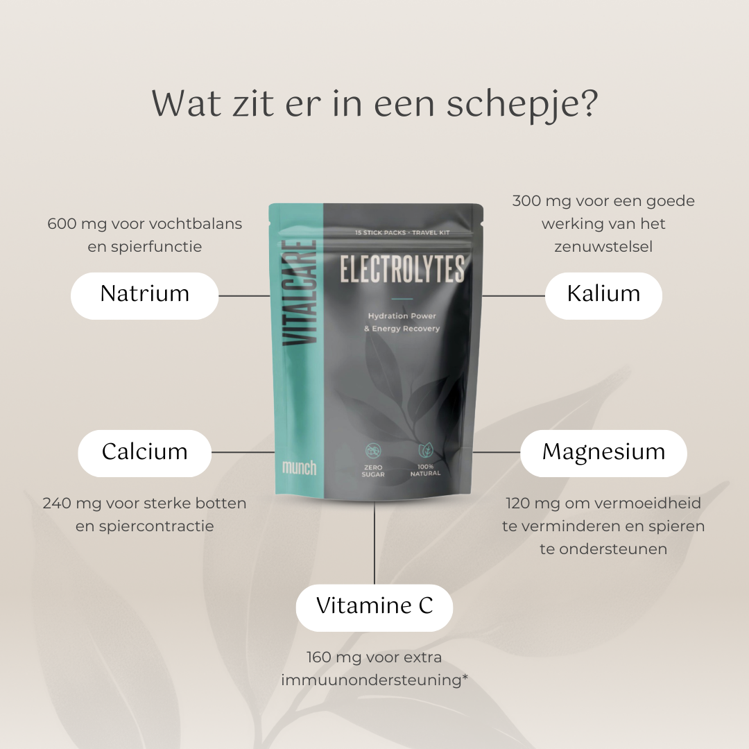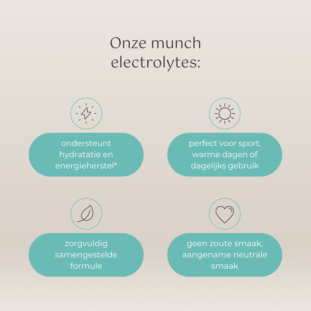 Munch's Electrolyte Formula combines essential minerals with vitamin C in a refreshing, light peach-flavored powder that is virtually tasteless and dissolves easily in water.