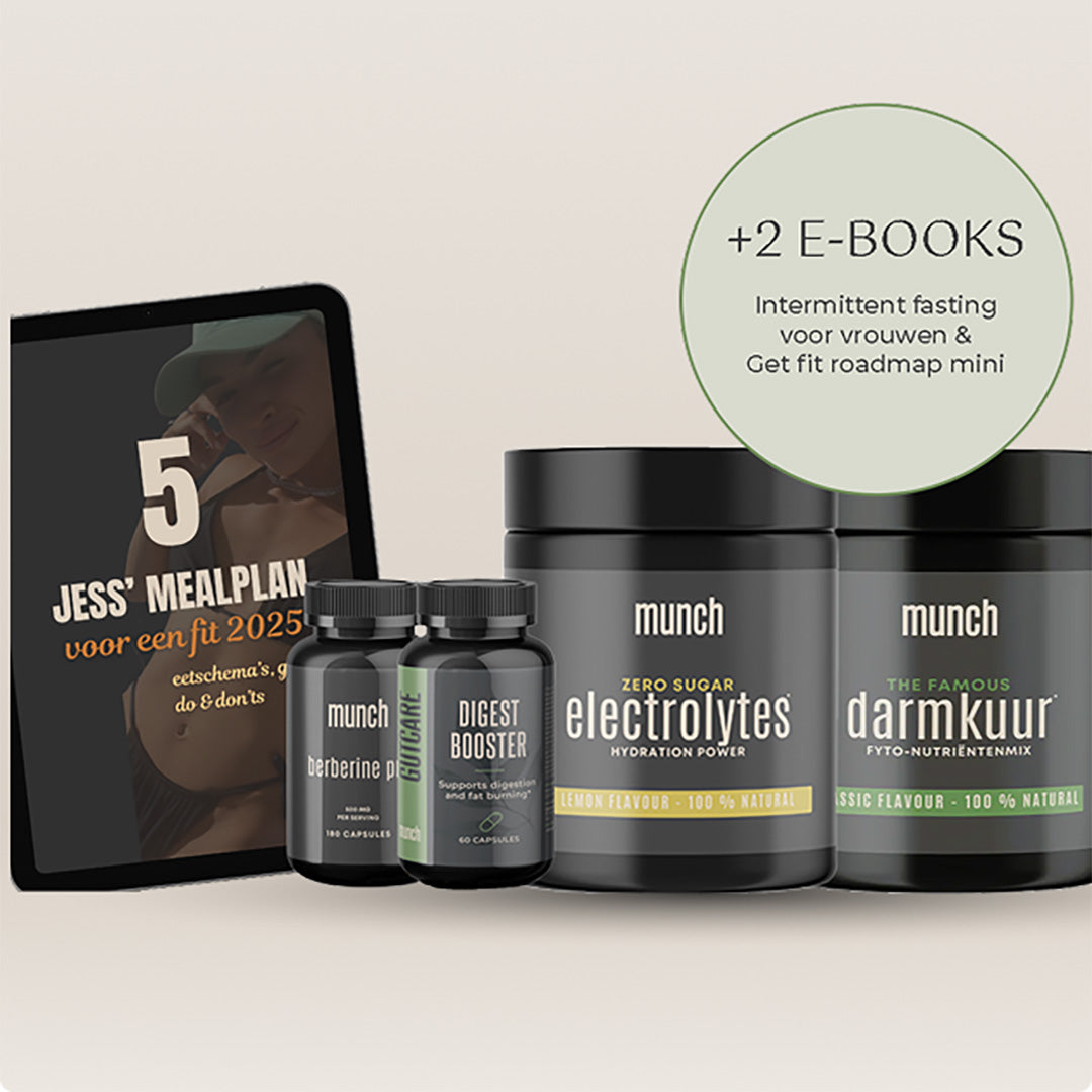 4 compléments : Cure intestinale, vinaigre de cidre 60 caps, berbérine 180 caps, électrolytes.